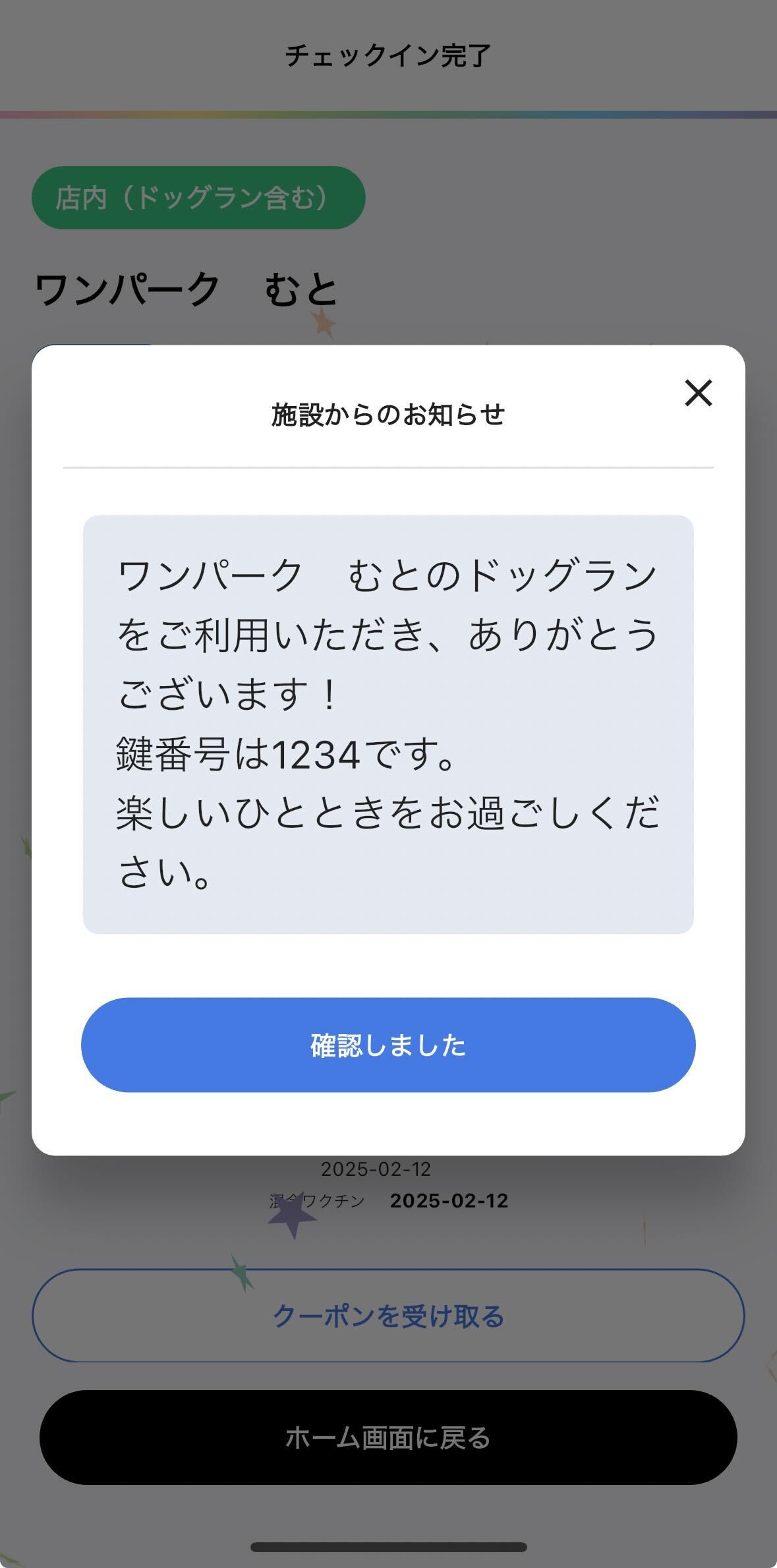 チェックイン完了時にユーザーに表示されるメッセージを設定する方法を説明します。