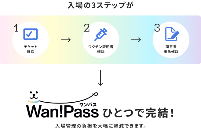 Wan!Passのチケット販売機能では、チケット販売から入場確認まで一元管理が可能です。