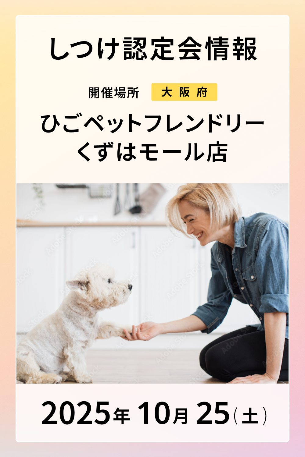 ひごペットフレンドリー くずはモール店で認定会を開催します! 店内ドッグランスペースにて当日受付順で実施致します! 皆様のご参加お待ちしております!!