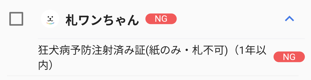 狂犬病注射済票(札)でも通常チェックインが可能となり、