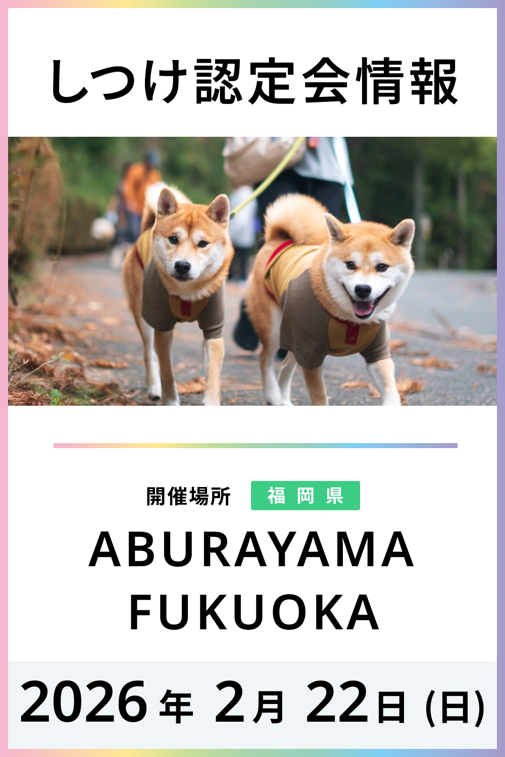 2月22日(日)ABURAYAMA FUKUOKA(福岡市南区)で開催されるイベント「ABURAYAMA WANT(わんと)」でWan!Pass認定会を実施します!
